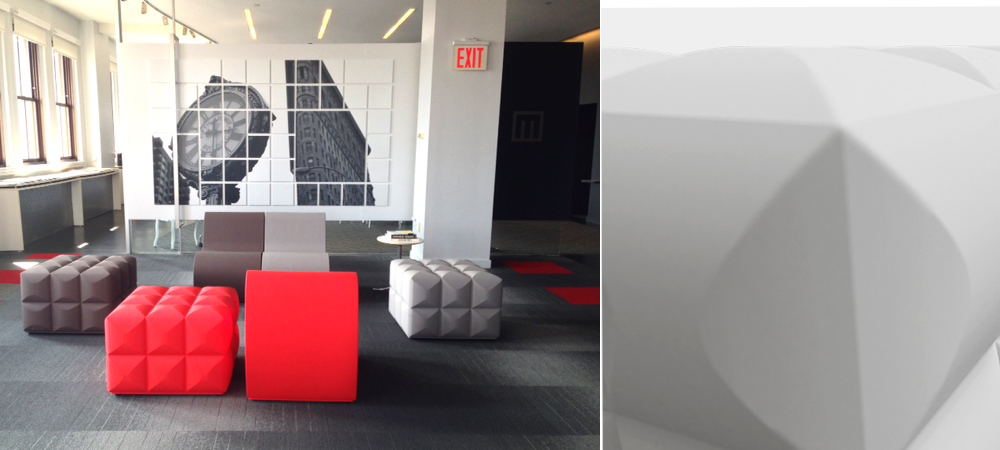 The Bench is a versatile pouf and bench collection available in three sizes and 30 standard colors.